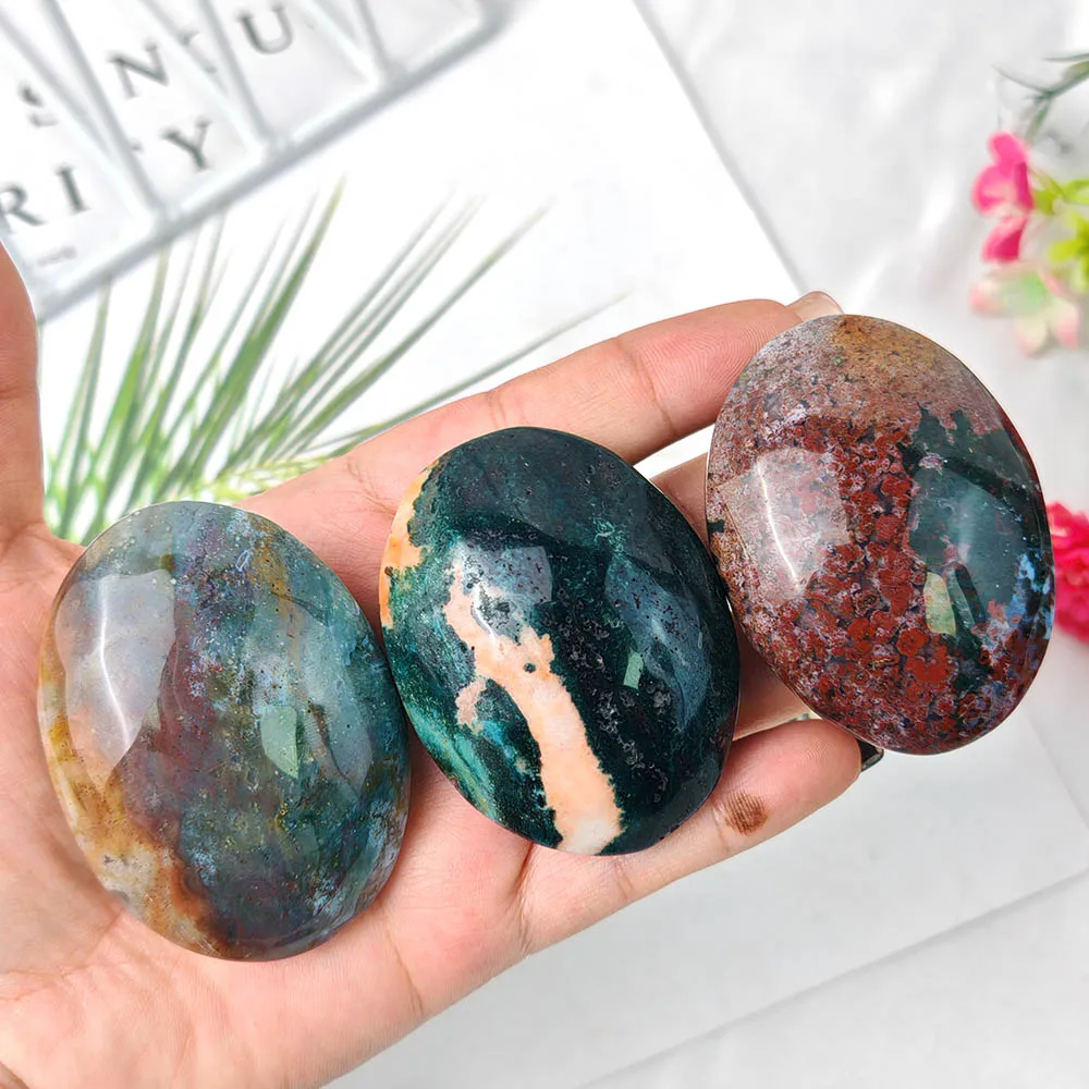 Crystal Ocean Jasper Oval Palm Stone Quartz Ideal for Home Decor Healing Gems Multi-colored Crystal Stone Silky Texture Reiki