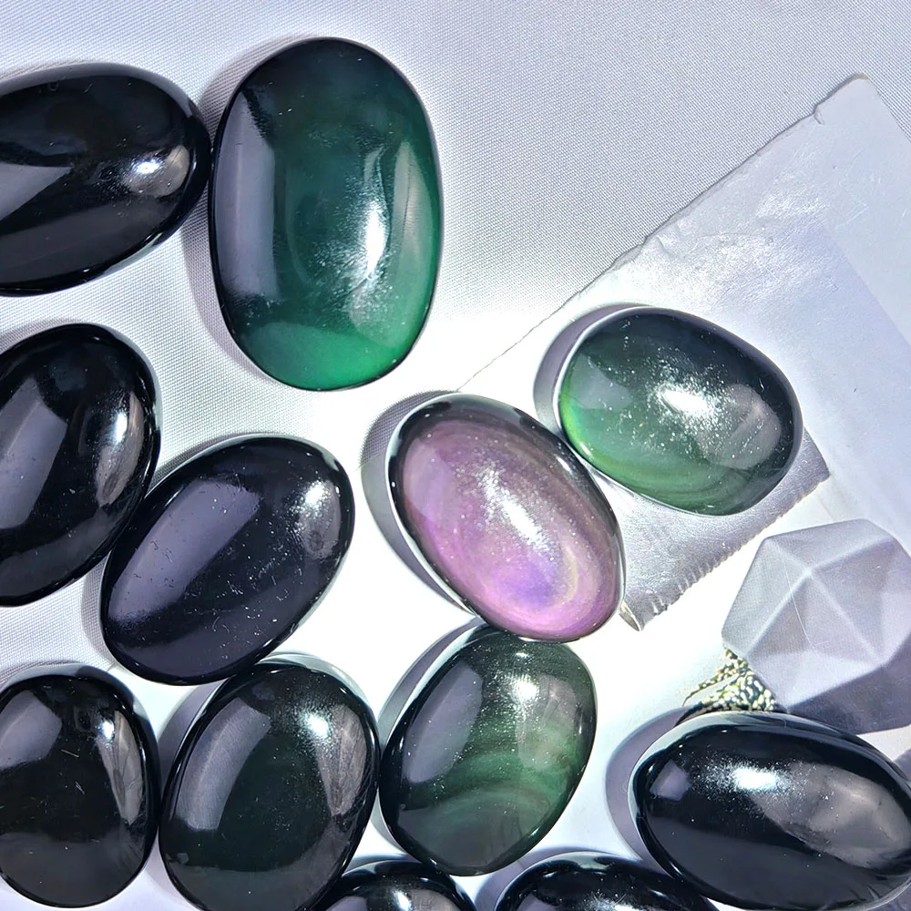 Rainbow Obsidian Crystal Palm Stone Polished Strong Light Multiple Colors Gems Home Decor Unique Gift for Crystal Lover Ornament