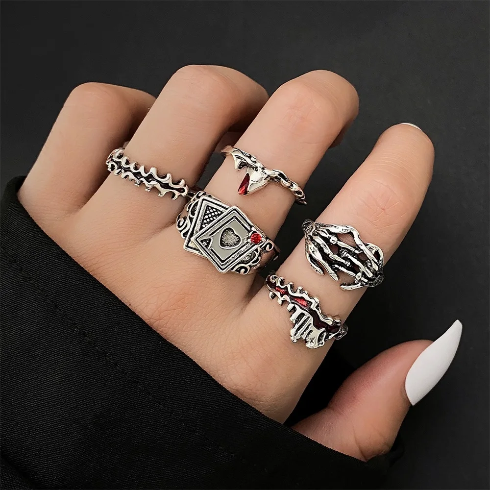 IFMIA Punk Fashion Palm Hollow Rings Set For Women Men Vintage Silver Color Metal Gothic Geometric Anillos Jewelry