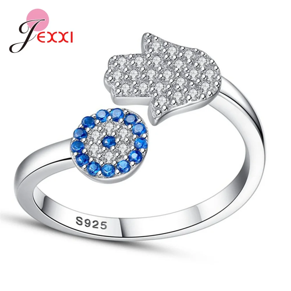 Popular Ring S925 Sterling Silver Jewelry AAA Cubic Zircon Evil Eye Palm Hand Opening Band Adjustable Size for Women Girls
