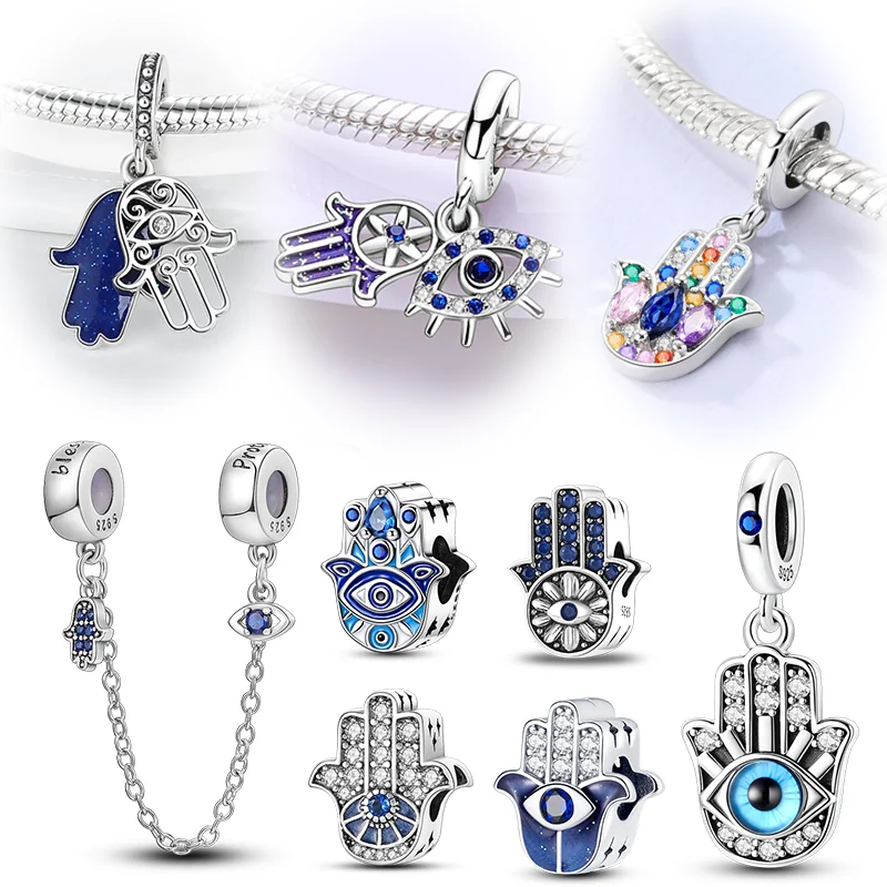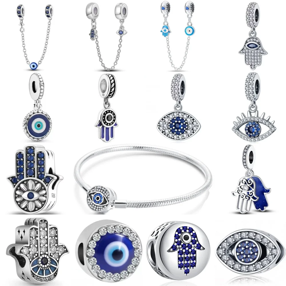 925 Sterling Silver Charms Beads Blue Eyes and Palms Dangle Fit Original Bracelet Pendants For Women Jewelry Gift