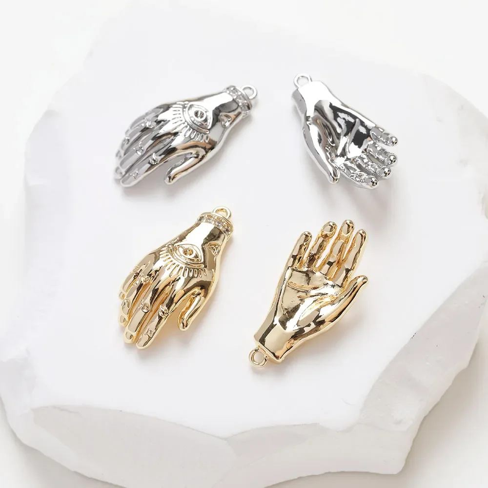 2PCS Dainty Evil Eye Palm Pendant Charms for Jewelry Making Diy Handmade 14k Gold Plated Brass Accessories 11*23mm