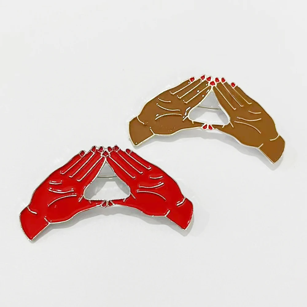 Kshmir Metal Smooth Double Hand-shaped Palm Large Brooches for Women Men Unique Punk Creative Suit Pins Party Jewelry Gifts