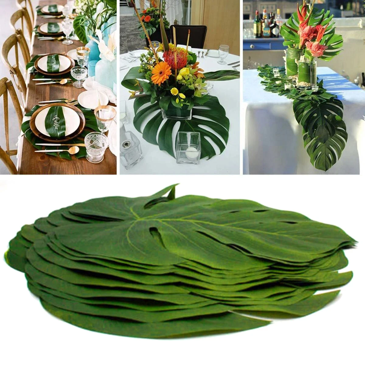 20pcs Tropical Palm Leaf Hibiscus Flower Imitation Leaves for Hawaii Party Theme Birthday Party Decoration Table Decoration