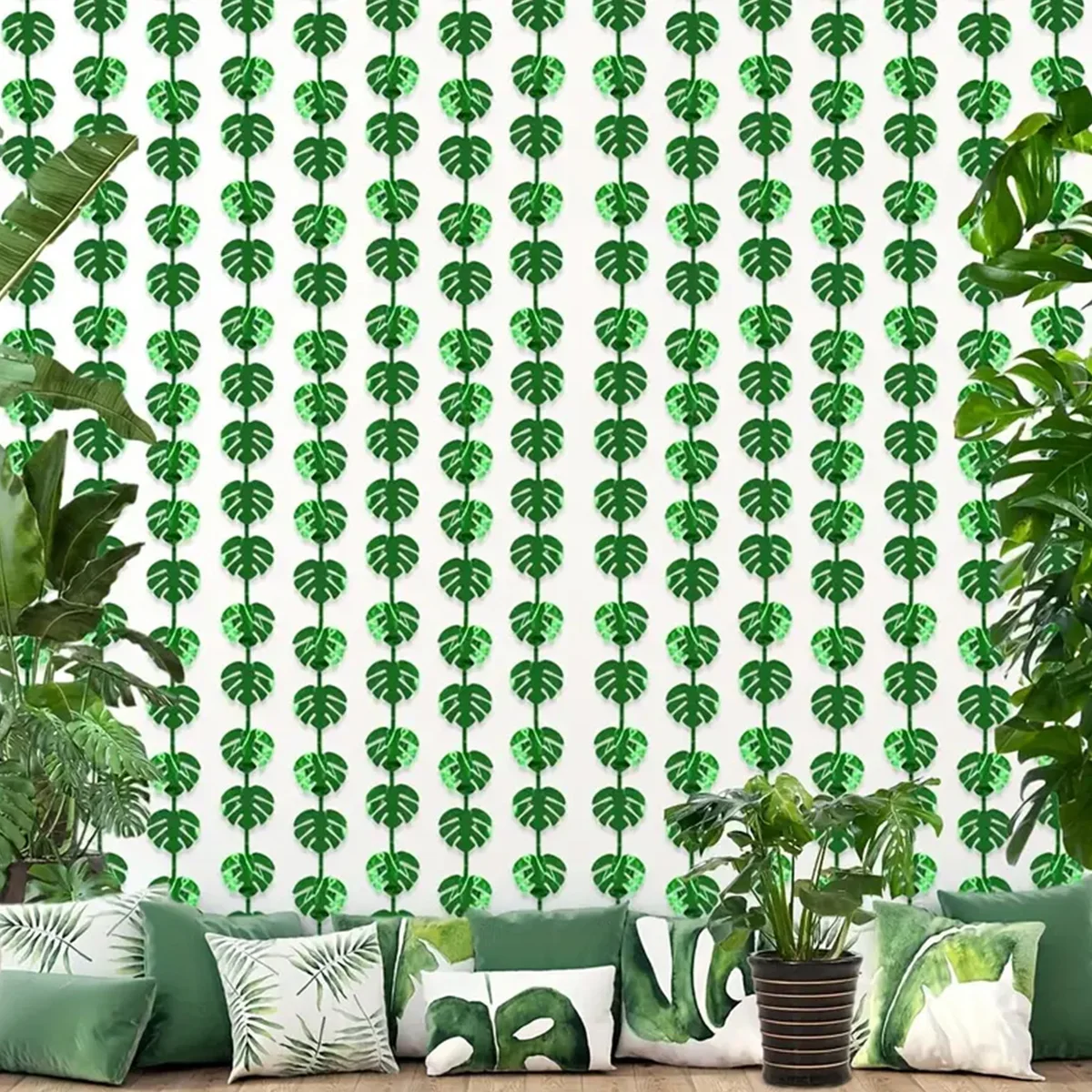 1X2M Green Tropical Palm Leaves Tinsel Foil Fringe Curtains Hawaiian Party Photo Backdrop Tropical Jungle Party Decorations