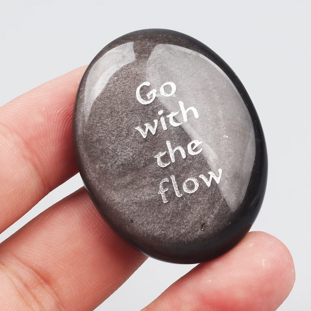 Slive Obsidian Soap Stone Inspirational Stone Craved Inscription Energy Palm Stone Home Decoration Gifts Crafts
