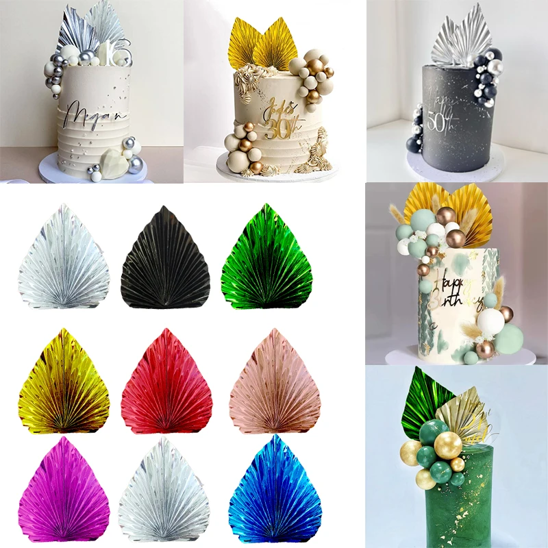 2Pcs Shinny Palm Leaves Paper Palm Leaf for Cake Decorating Golden Faux Leaves Cake Toppers DIY Cupcake Decor