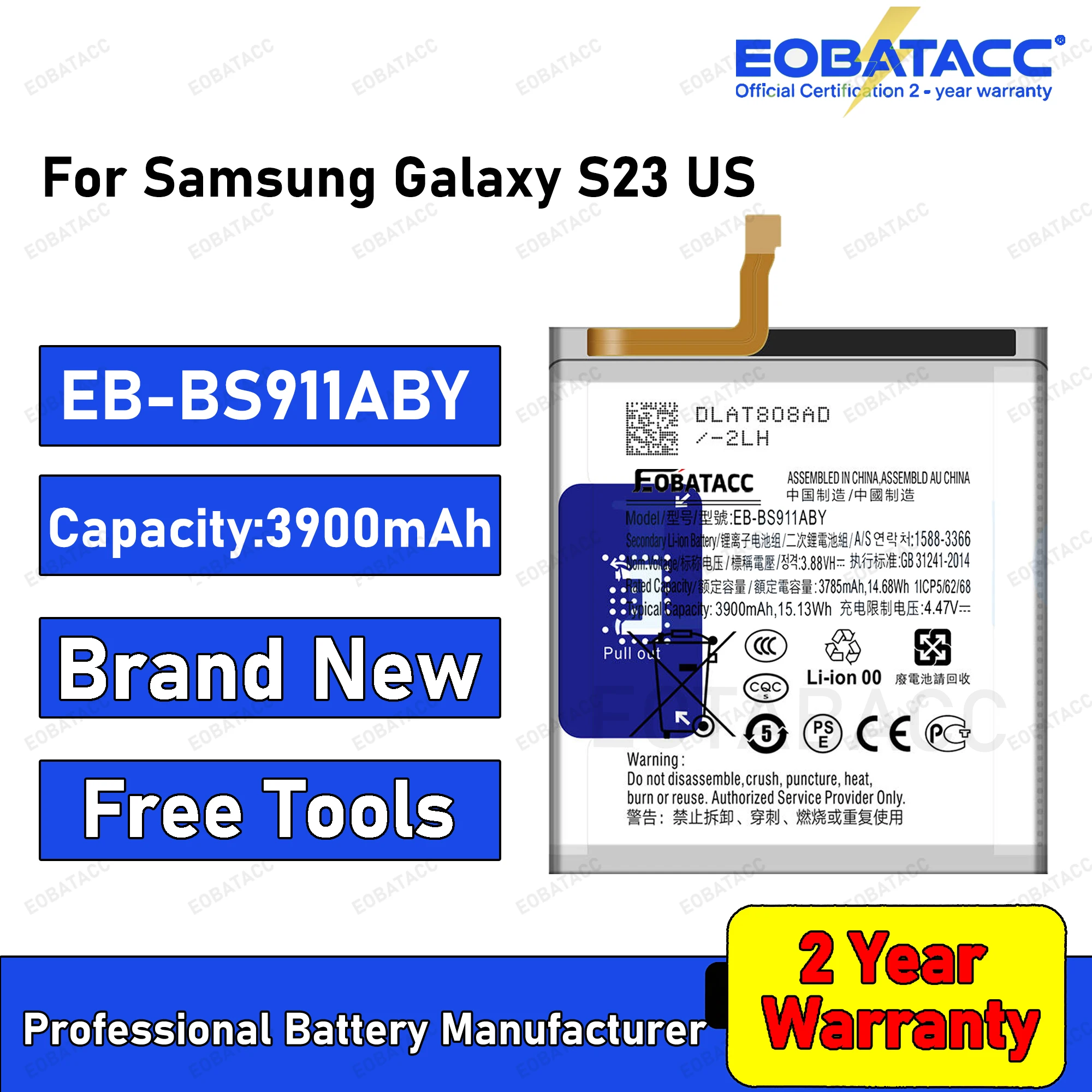 2025 Years EOTABACC 100% New High Quanlity Battery EB-BS911ABY For Samsung Galaxy S23 Battery +Free Tools