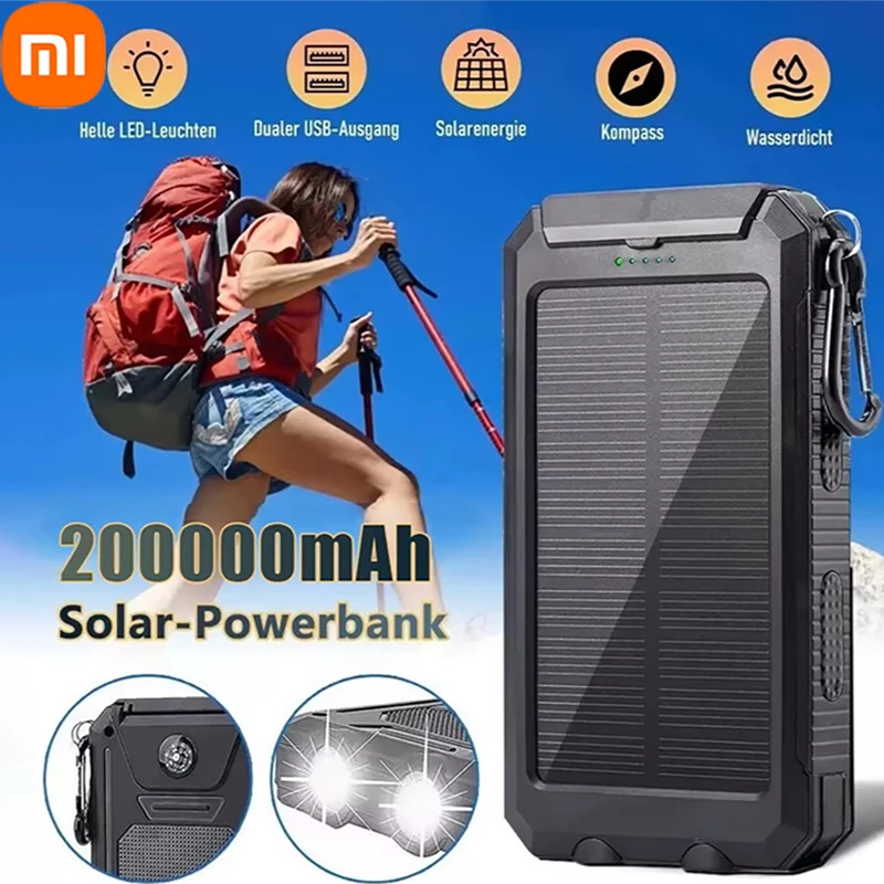 Xiaomi 200000mAh Power Bank Fast Charging Outdoor Large Capacity External Battery Solar PowerBank Flashlight For iPhone Samsung