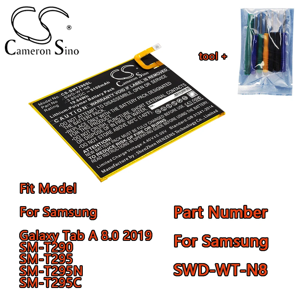 Cameron Sino 5100mAh Tablet Battery For Samsung Galaxy Tab A 8.0 2019 SM-T290 SM-T295 SM-T295N SM-T295C