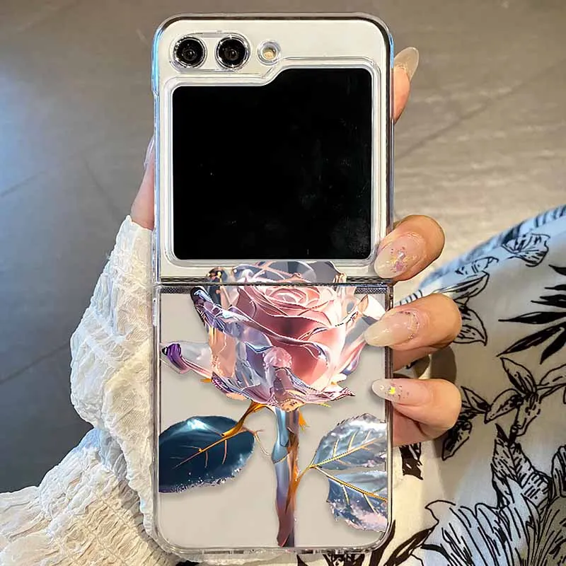 Flower Pattern Clear Phone Case For Samsung Galaxy Z Flip7 FE Flip5 Flip6 Transparent Folding Cover For Samsung Z Flip 7 6 5 4 3