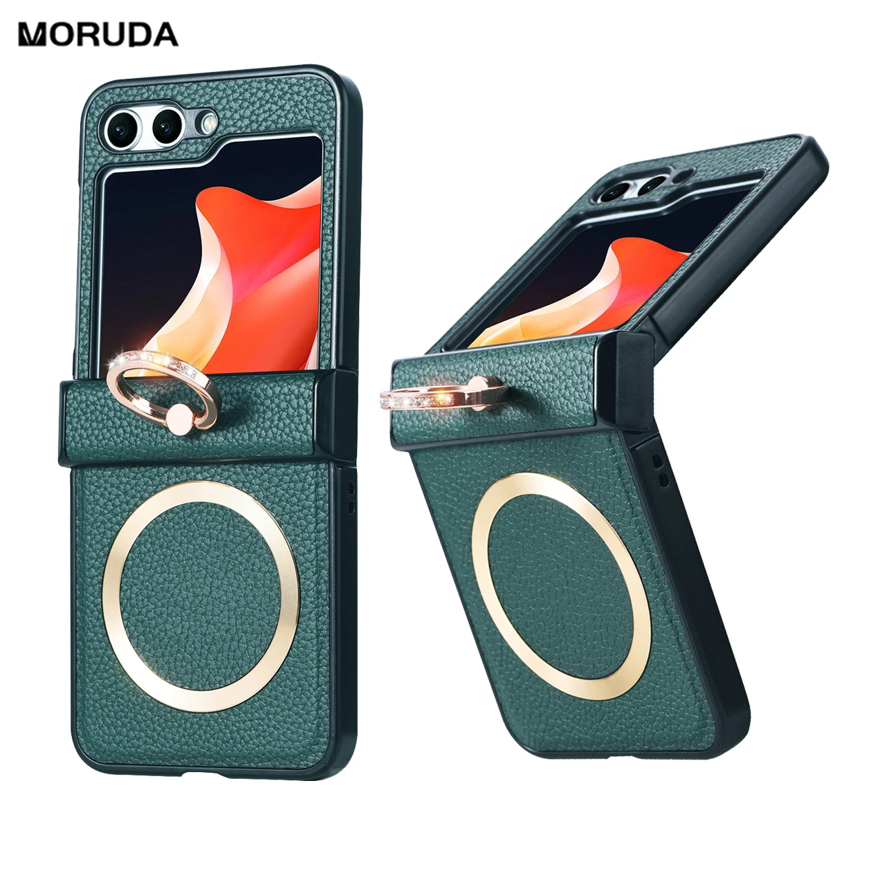 Leather Magsafe Phone Case For Samsung Galaxy Z Flip 6 5 4 3 Ring Holder Cover For Samsung Z Flip5 Wireless Charge Business Case  Read more