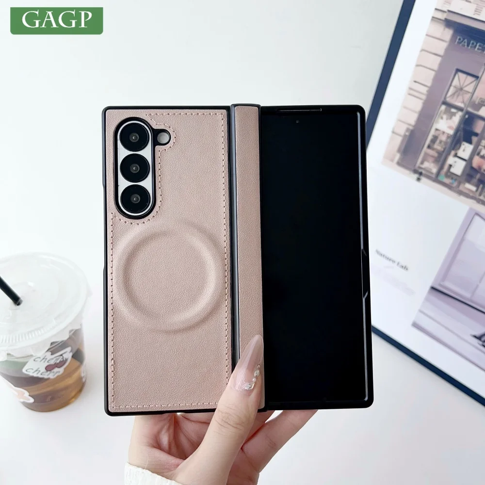 For Samsung Z Fold 7 Leather Magsafe Wireless Charge Case For Samsung Galaxy Z Fold 7 6 5 4 3 Hinge Protection Armor 2in1 Cover