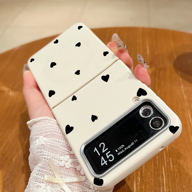 For Samsung Galaxy Z Flip6 Flip5 Flip4 Case Black Love Hearts Magnetic Leather Texture Folding Cover For Samsung Z Flip 6 5 4 3