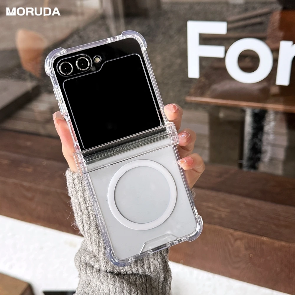 for Magsafe Mirror Acrylic Transparent Case for Samsung Galaxy Z Flip 6 5 4 3 7 flip6 Flip5 Magnetic Clear Hard Shockproof Cover