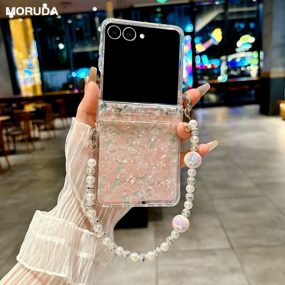 Aurora Shell Pattern Wrist Chain Case for Samsung Galaxy Z Flip 7 6 5 4 3 flip7 Zflip Bracelet Hard Acrylic Ins Korean Cover  Read more