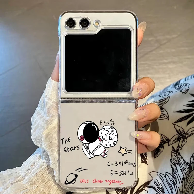 Cute Astronaut Pattern Clear Phone Case For Samsung Galaxy Z Flip 7 FE Flip5 Flip6 PC Folding Cover For Samsung Z Flip 7 6 5 4 3
