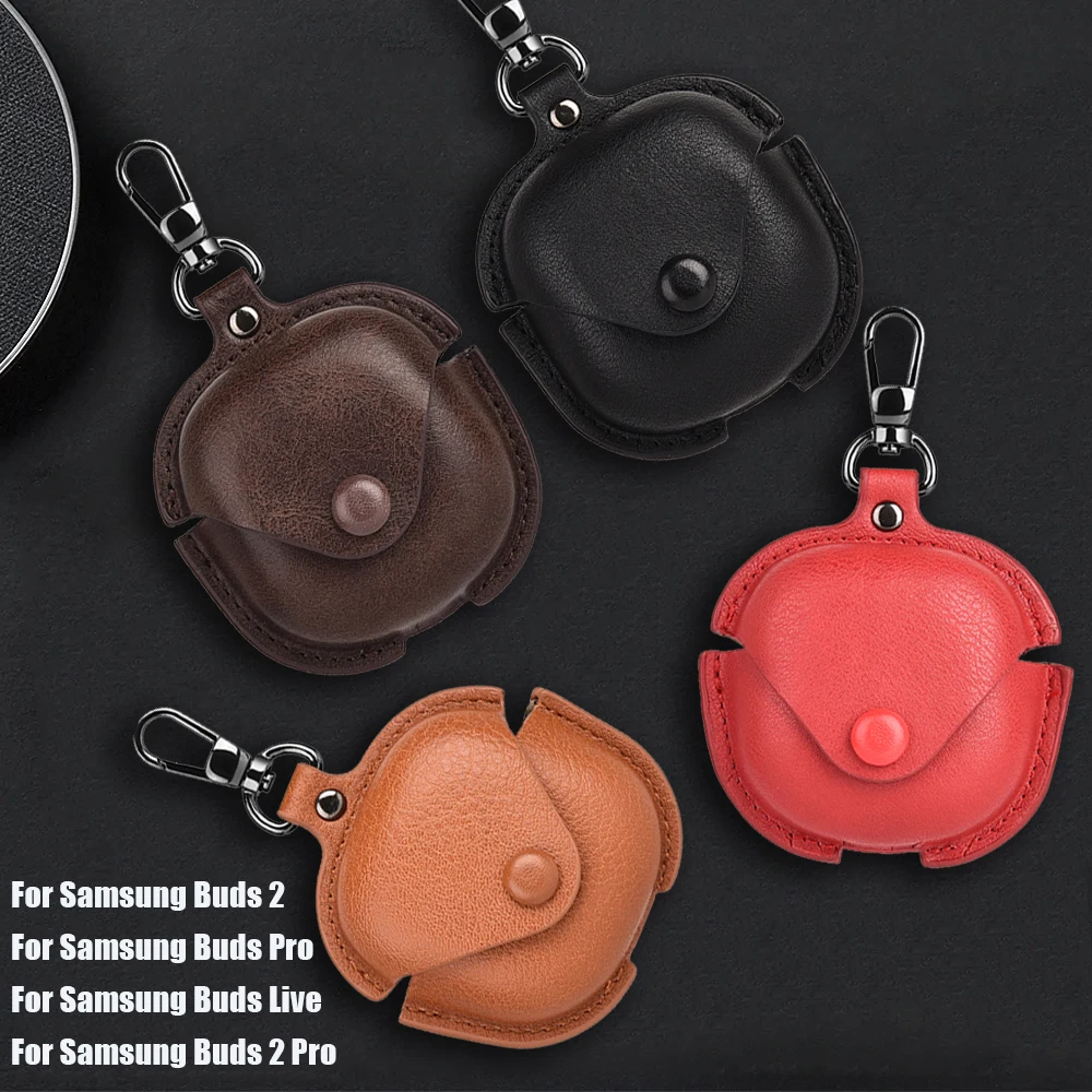Luxury Leather Case For Samsung Galaxy Buds 2 Pro Buds Live Buds FE Case Bluetooth Wireless Headphones Protective Cover Keychain  Read more