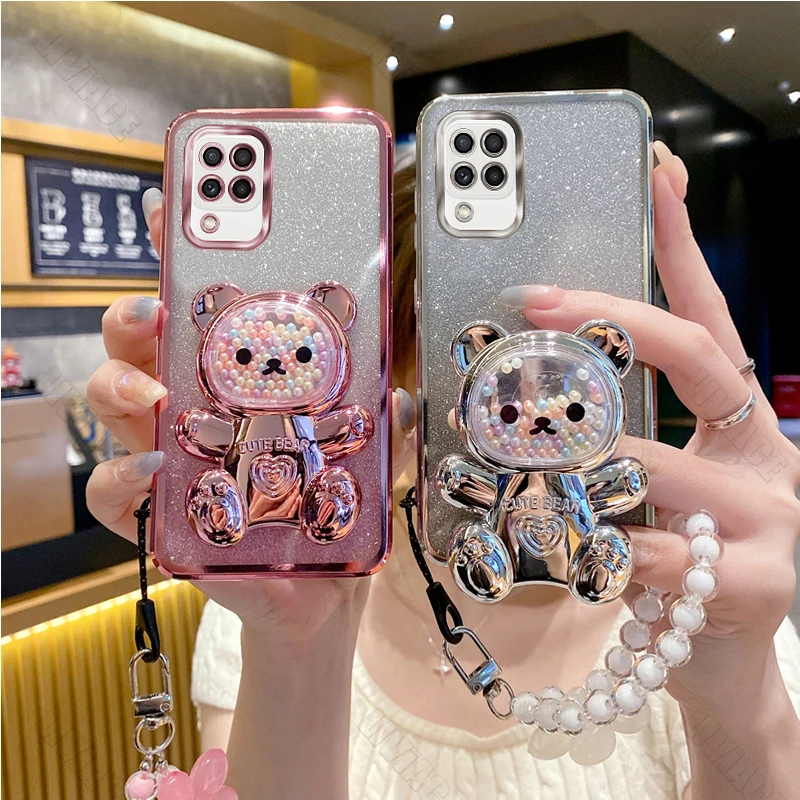 A 22 A 12 M 12 F 12 Flower Strap Bear Phone Holder Case On For Samsung Galaxy A22 4G 5G A12 M12 F12 Stand Cover