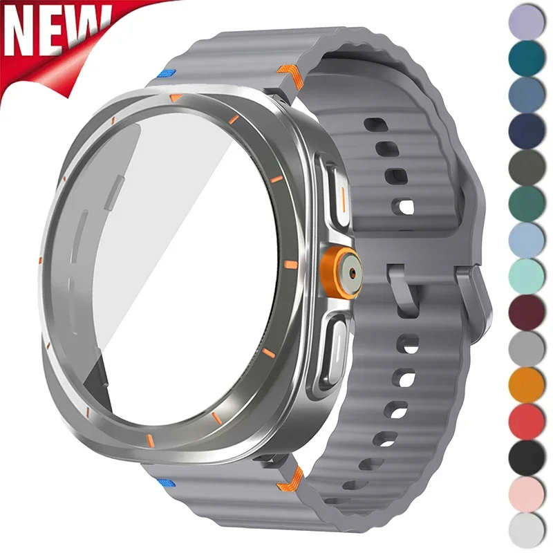 Case+Strap for Samsung Galaxy Watch 7 6 40mm 44mm Silicone Band Tempered Glass Film Protective Case Upgrade Galaxy 7 Ultra 47mm