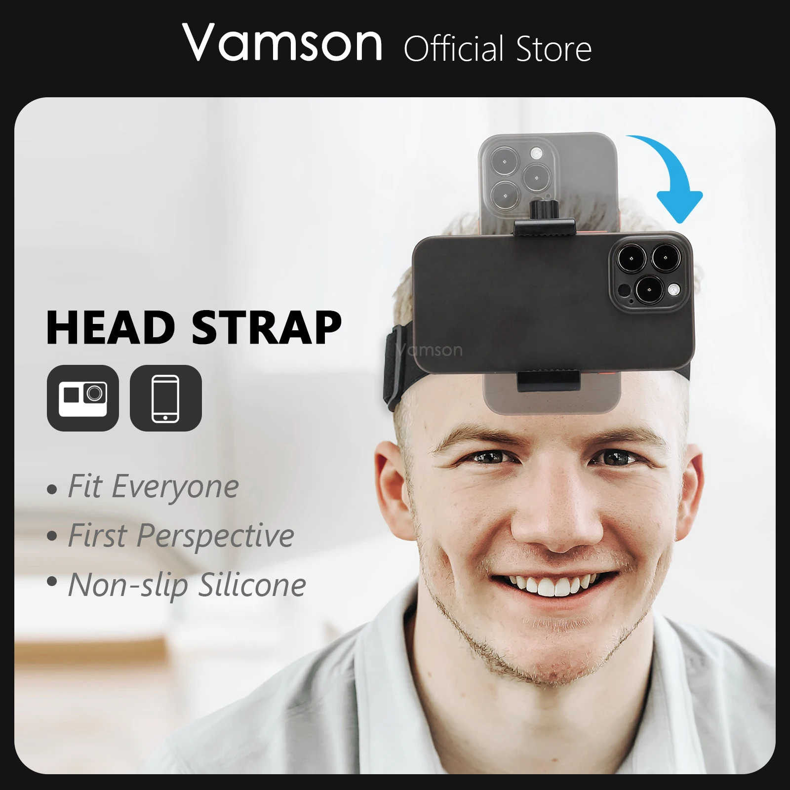 Vamson 360 Degree Mobile Phone Clip for Head Strap Belt Strap Mount Adjustable Cellphone Holder for Samsung iphone Insta360 X3