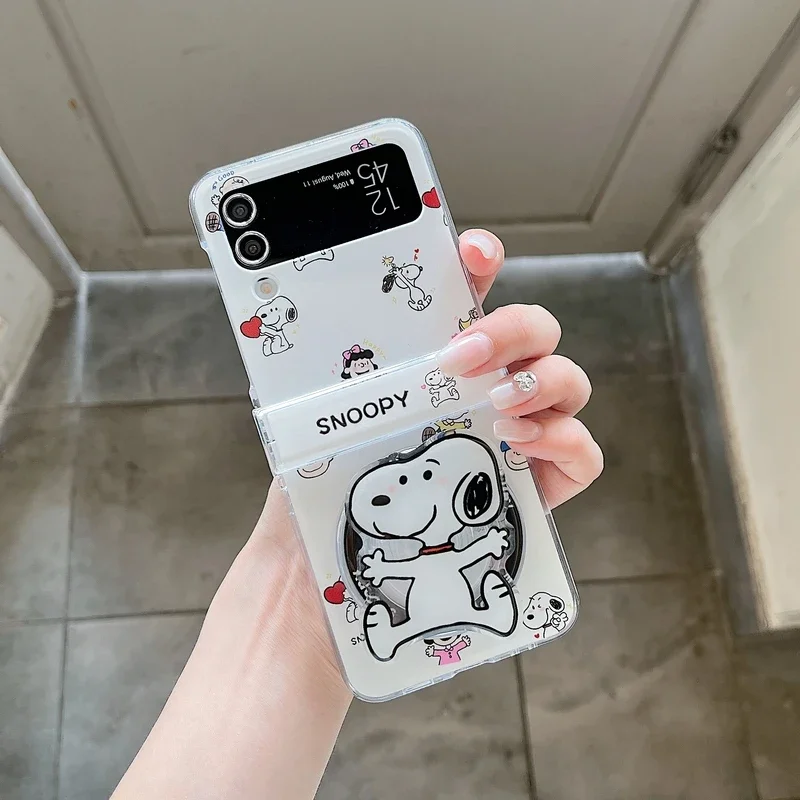 Cute Cartoon Snoopy Charlie Brown Magnetic Holder Wireless Charge Phone Case For Samsung Galaxy Z Flip 7 6 5 4 3 Hard TPU Cover