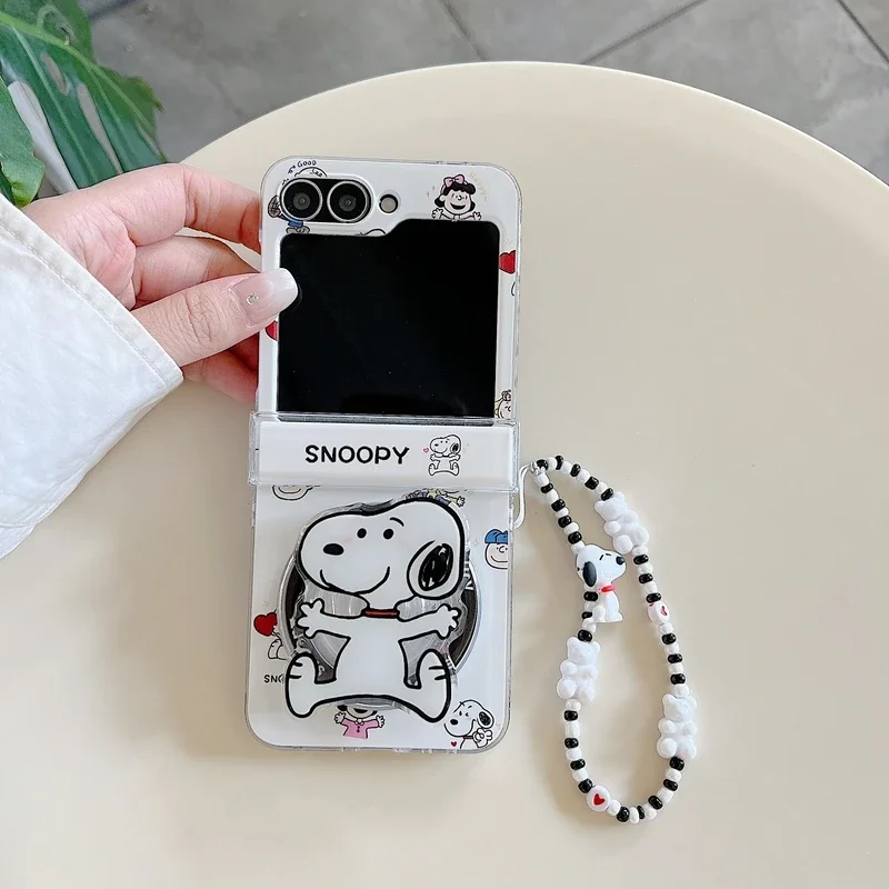 Cute Cartoon Snoopy Charlie Brown Magnetic Holder Wireless Charge Phone Case For Samsung Galaxy Z Flip 7 6 5 4 3 Hard TPU Cover