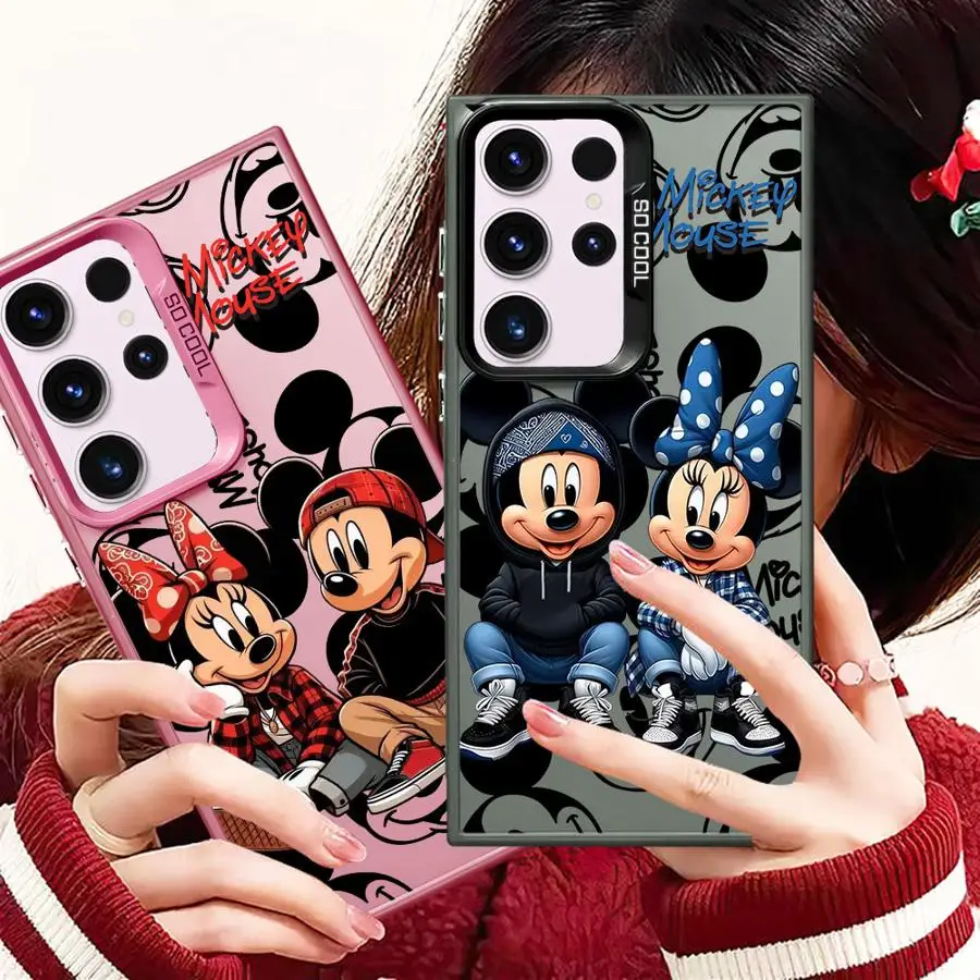 Cool Mickey Minnie Mouse Phone Case For Samsung S25 S24 S23 S22 S21 Note20 FE Edge Plus Ultra 4G 5G Luxury Tempered Glass Cover