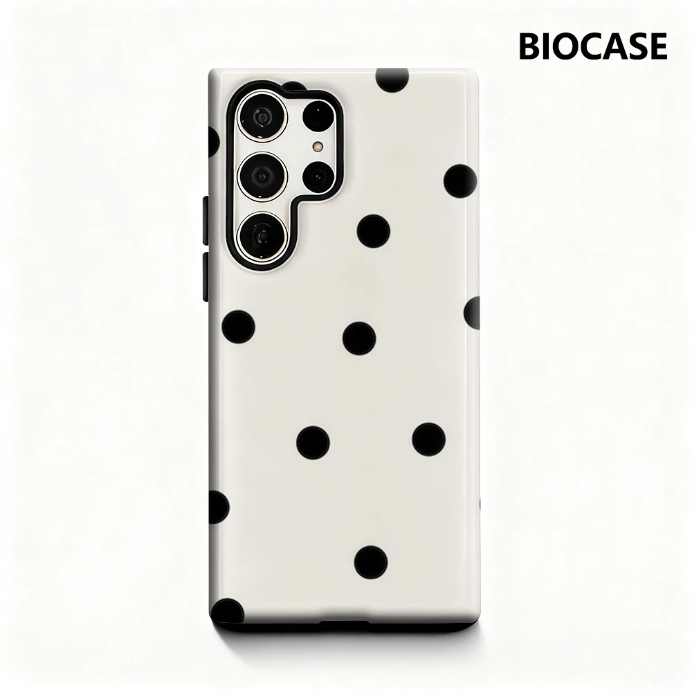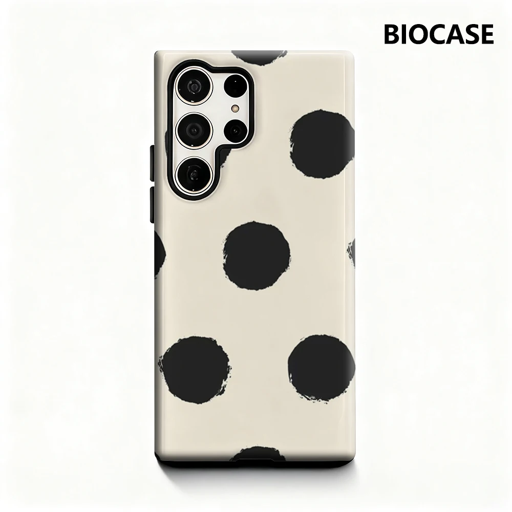 Hand Painted Black Polka Dots Phone Case for Samsung Galaxy S25 Ultra S24 S23 Ultra Plus Glossy Double-layer Back Cover