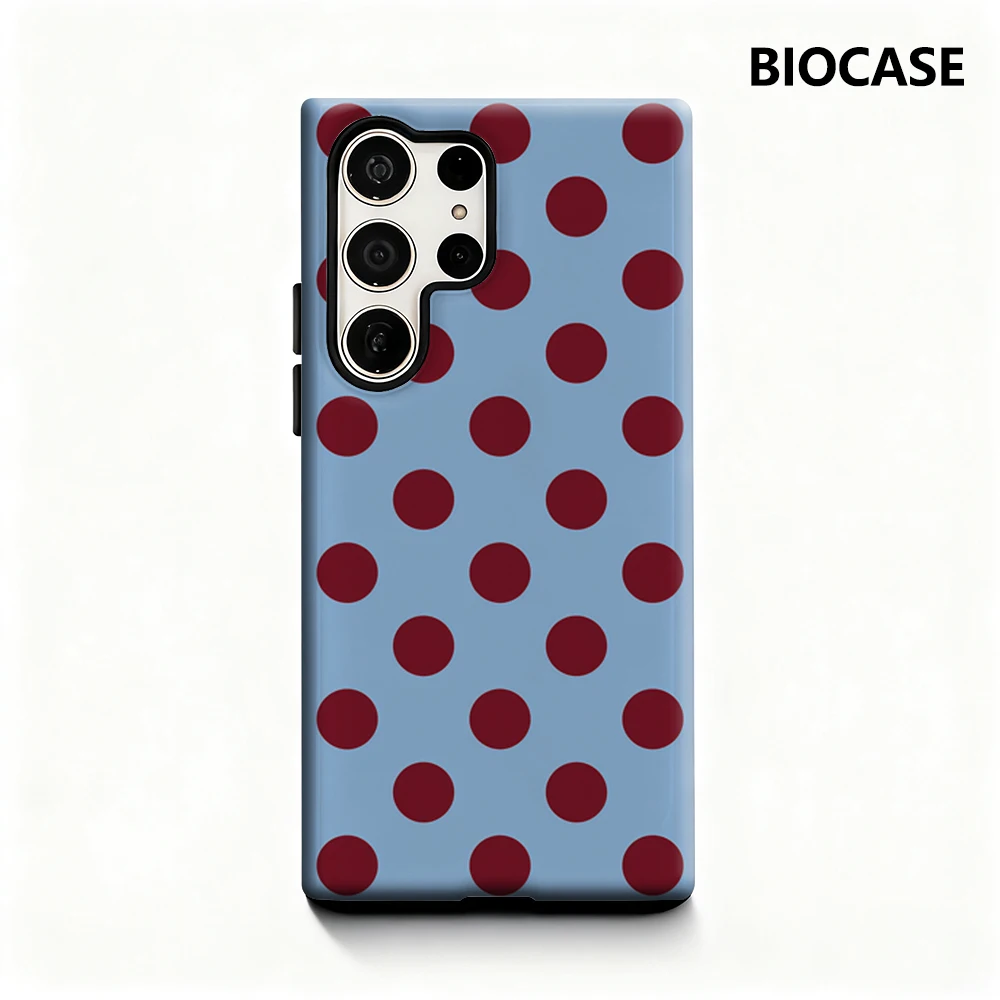 Red Polka Dots on Blue Phone Case for Samsung Galaxy S25 Ultra S24 S23 Ultra Plus Glossy Double-layer Back Cover