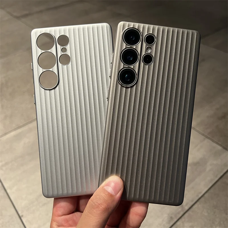 For Samsung Galaxy S23 S24 S25 Ultra S25+ Hard Back Case Titanium glossy Retro Color corrugated stripe anti-fingerprint Cover