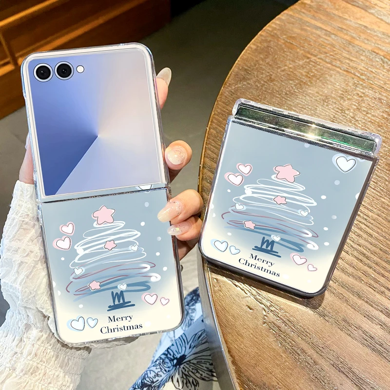 Merry Christmas Print Folding Phone Case For Samsung Galaxy Z Flip 7 FE 6 5 4 3 Hard Clear Cover For Samsung Z Flip5 Flip4 Flip6