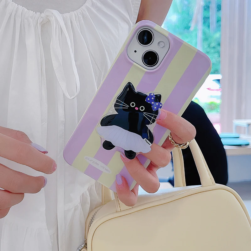 Korean Cute Black Cat Griptok Bracket Grip Tok For iPhone 7 15 12 Samsung Universal Accessories Phone Holder Ring Support Stand