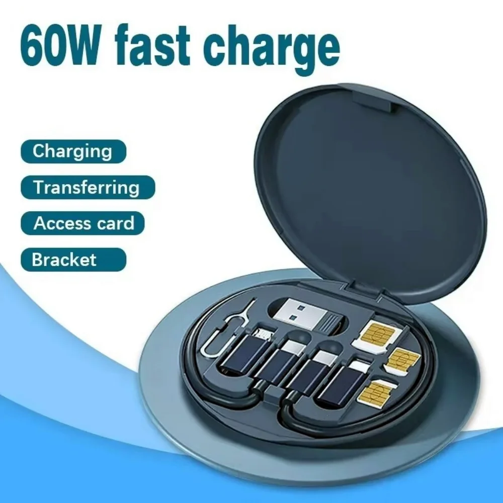 Mini Data Cable Storage Box 60W Type-C To USB C To Micro USB To Lighting Fast Charging Adapter For iPhone Samsung Xiaomi Huawei