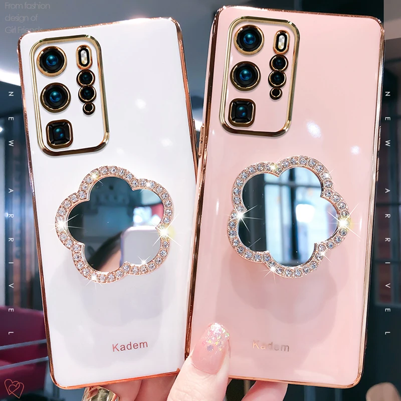 Matte Flower Mirror Holder Case For Samsung S23 Ultra S22 Plus S21 S20 FE S10 Plus Note 10 Lite S9 S8 Simple Texture Soft Cover