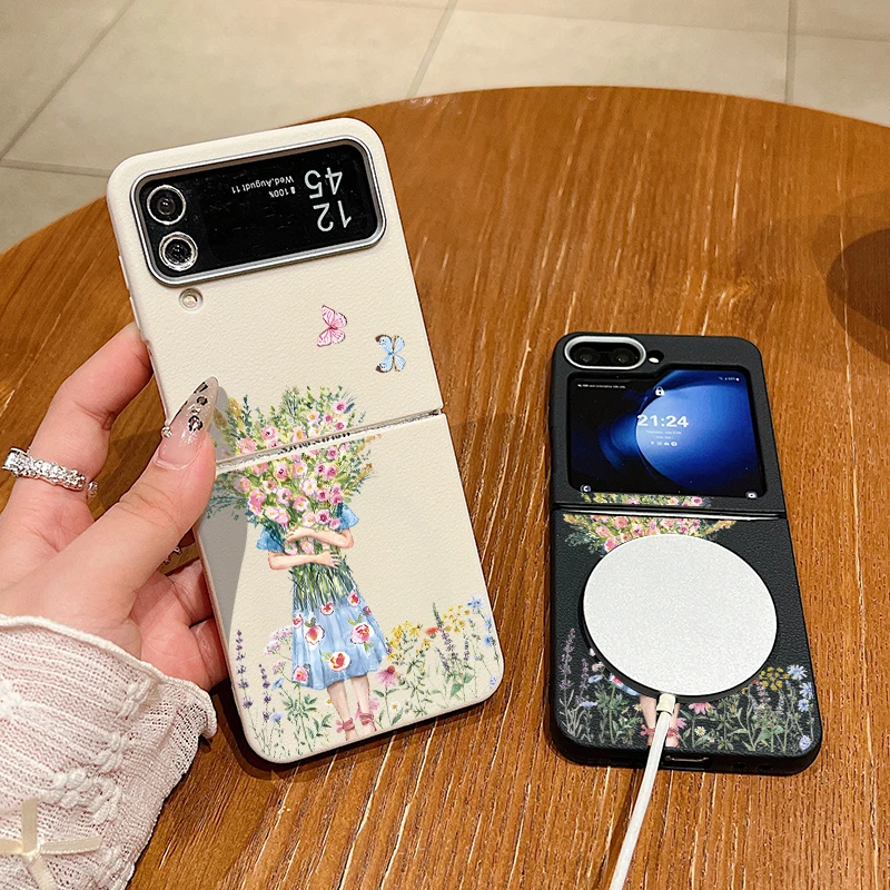 Flower Girl Print Case For Samsung Galaxy Z Flip6 Flip5 Flip4 Capa Magnetic For Magsafe Folding Cover For Samsung Z Flip 6 5 4 3