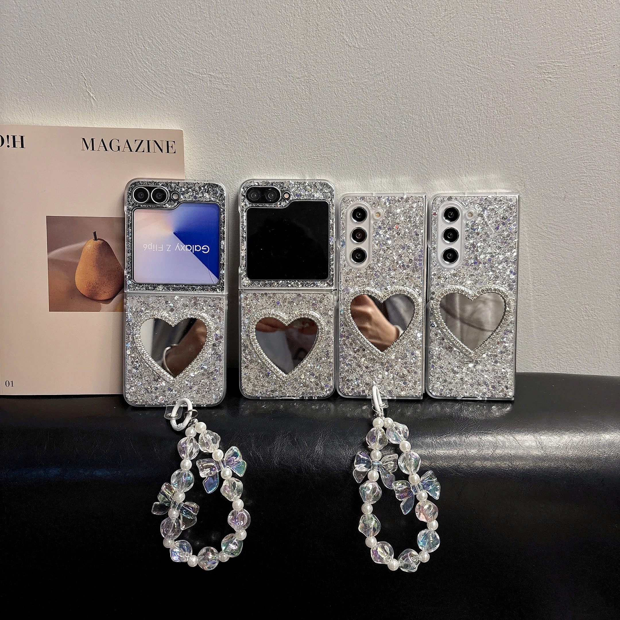 3D Love Heart Mirror Bracelet Phone Case For Samsung Galaxy Z Flip 6 4 5 Shockproof Cover For Samsung Z Flip6 ZFlip 6 ZFlip6