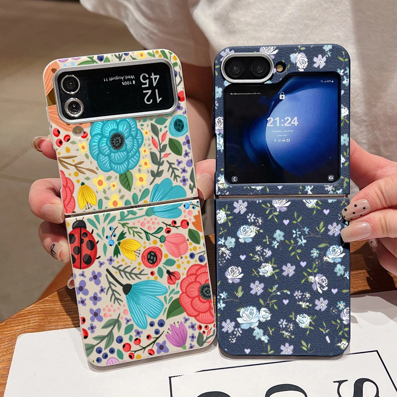 For Samsung Galaxy Z Flip 7 FE 5 6 4 3 5G Small Flowers Pattern Folding Hard PC Phone Case Cover For Samsung Z Flip4 Flip5 Flip6