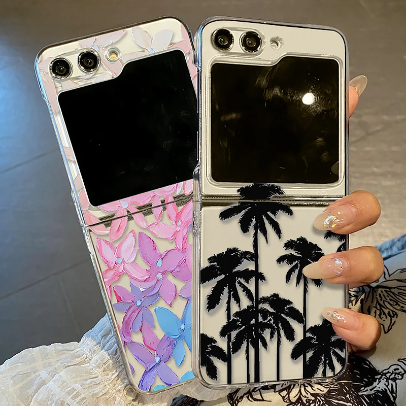 Romantic Flower Pattern Clear Phone Case For Samsung Galaxy Z Flip7 FE Flip5 Flip6 5G Folding Cover For Samsung Z Flip 7 6 5 4 3