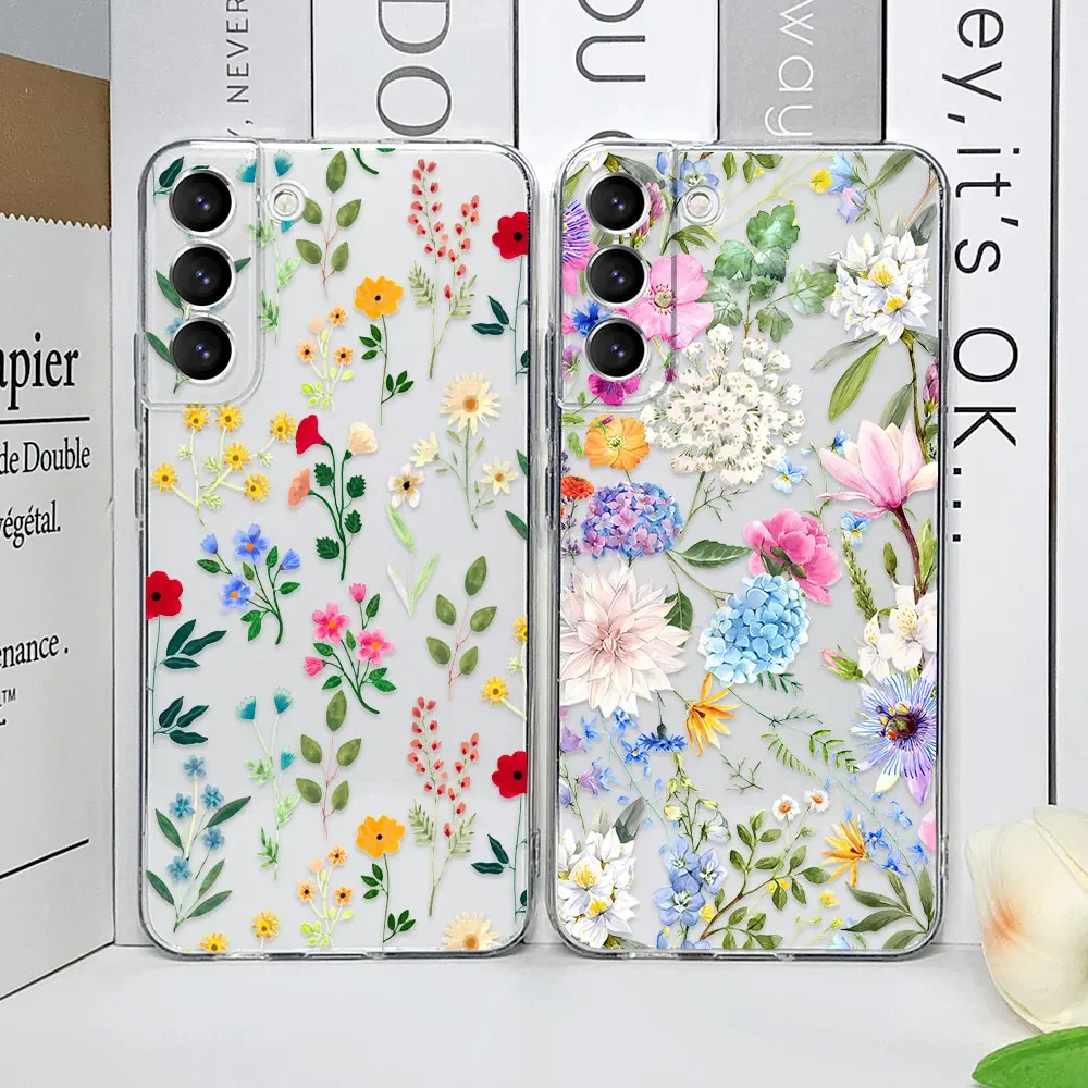 Cute Flower Painted Phone Case for Samsung S22 S21 FE Ultra Clear Silicone Soft Cases for Samsung Galaxy S25 S24 S23 Plus Covers