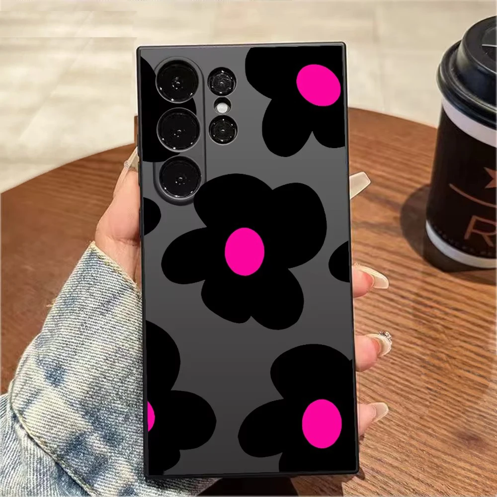 Black Flower Printed Phone Case For Samsung Galaxy Samsung Galaxy S25 S23 S22 Ultra S24 Plus S21 S20 FE A15 A35 Anti-fall Cover