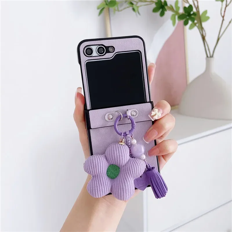 Flower Pendant Leather Plastic Hard Shell Phone Case for Samsung Galaxy Z Flip 7 6 5 4 3 Flip5 Flip4 Flip6 5G Shockproof Cover