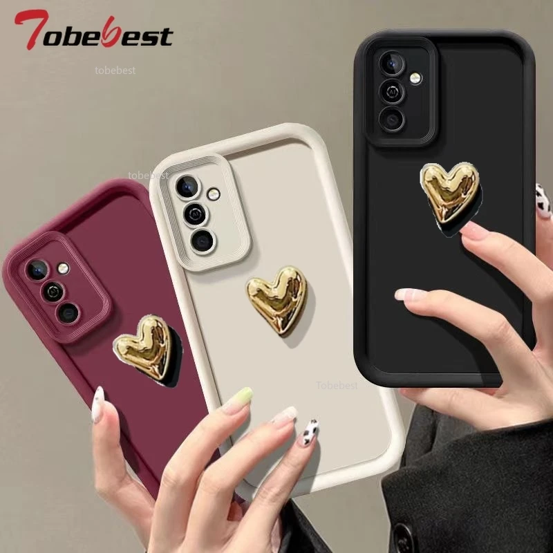 3D Gold Heart Silicone Case For Samsung Galaxy A16 A26 A36 A56 A06 A15 A25 A35 A55 A14 A24 A34 A54 A05 A05S 4G 5G Soft Cover