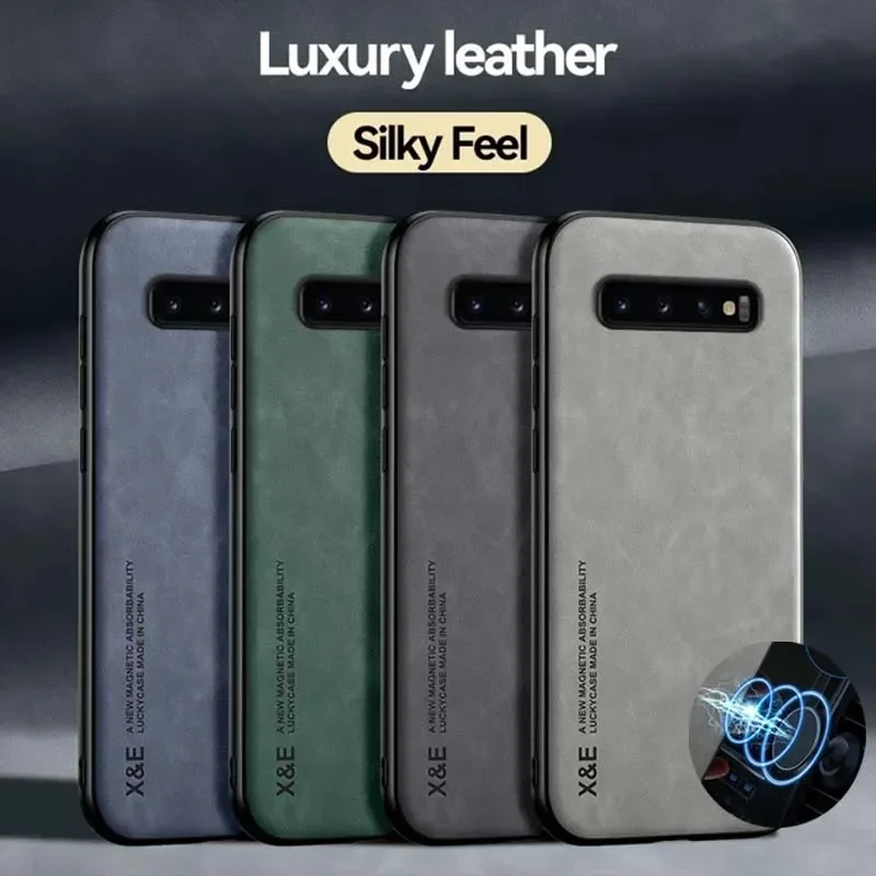 Case For Samsung S10 S9 Plus Note 10 Plus A56 A36 A26 A06 A55 A35 A15 Luxury Leather Cover With Metal Plate Support Car Hold