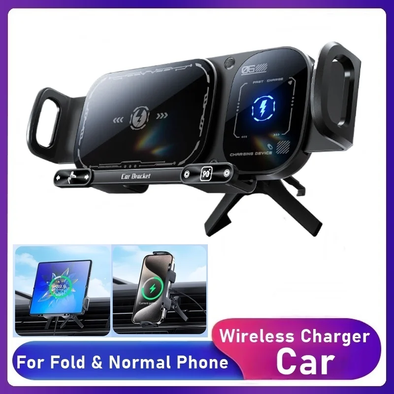 2IN1 Car Wireless Charger Phone Holder Touch Rotate Stand for Samsung Galaxy Fold 6 5 4 3 Z Flip Iphone 16 15 14 13 12 11Pro Max