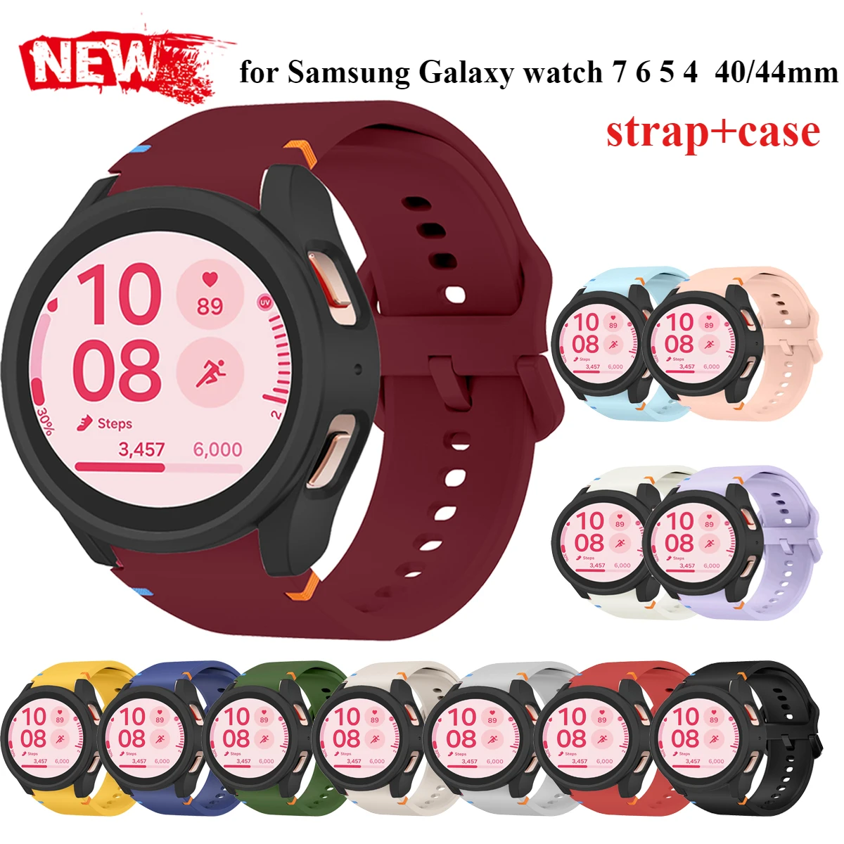 Silicone strap+case for Samsung Galaxy watch 7 6 5 4 40 44 2 pack PC Silicone strap and pc hollow case Sport bracelet Accessorie