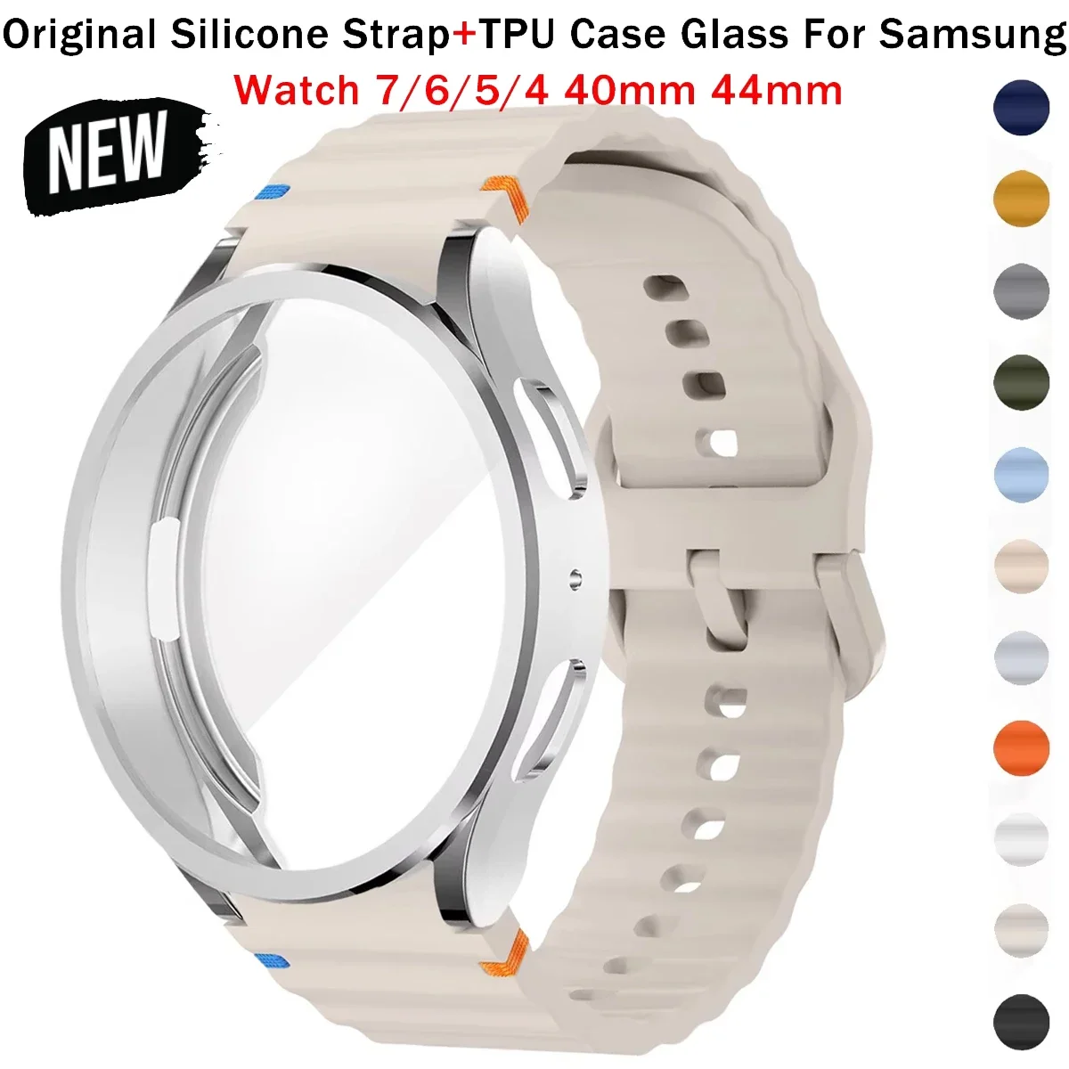 tpu Case+Strap Sports Strap for Samsung Galaxy 7 6 4 5 40mm 44MM Original Silicone Bracelet Soft TPU Case Glass Protective Cover