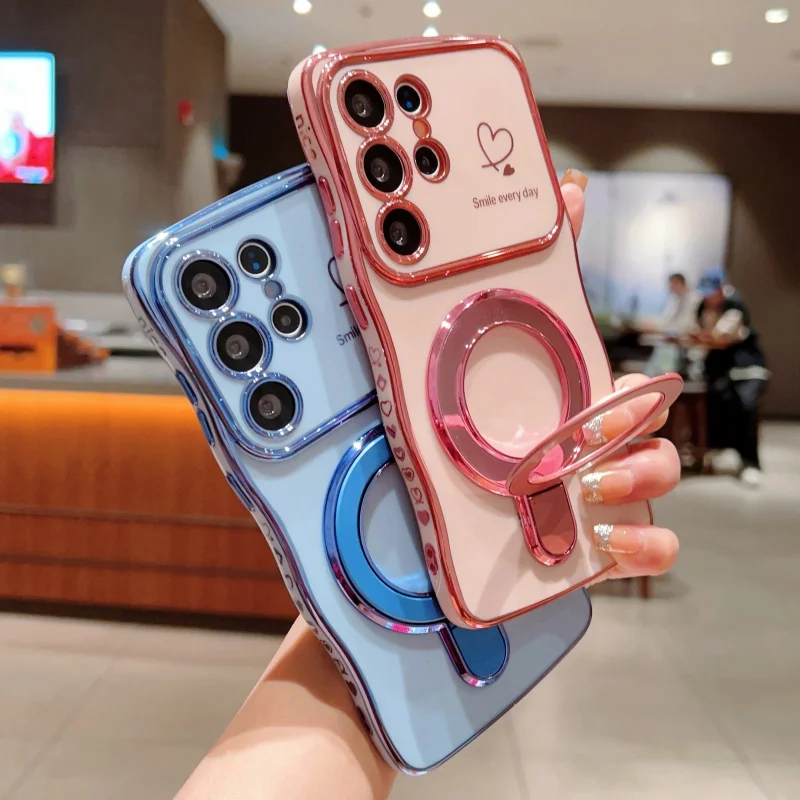 Wave Plating Side Love Heart Phone Case For Samsung Galaxy S25 S24 Ultra S23 S22 A16 A55 Protect Lens Shockproof Back Cover  Read more