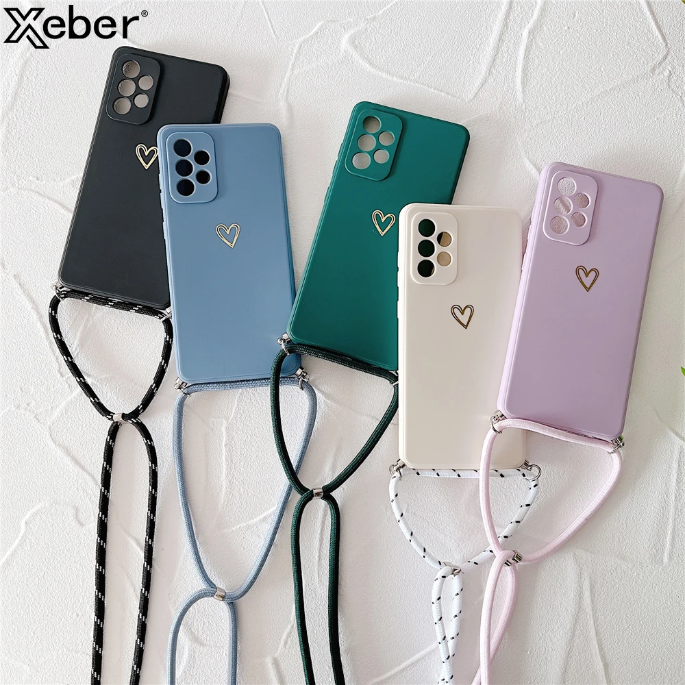 Love Heart Crossbody Lanyard Soft Phone Case For Samsung Galaxy S24 S23 Ultra S22 Plus S21 Cord Necklace Strap Silicone Cover
