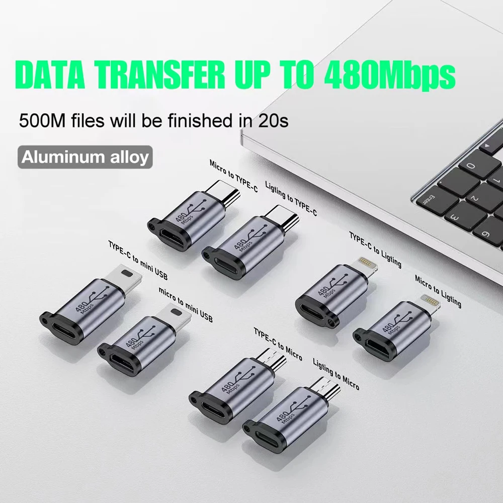 USB Type-C Adapter Type C To Lightning To Micro To Mini USB Female To Male Converters For Xiaomi Samsung Charger Data Cable